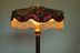 Layers of rose silk and lace provide the frame for the beaded art nouveau pattern incorporated into this luminous lampshade.